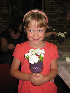 Ali & Sawyer took a flower arranging class at the library yesterday. The arrangements are ice cream sundaes with a cherry on top with a spoon hanging out. They were pretty cute. Sawyer took one for the team on this one. He wasn't too excited. Ali really enjoyed it.